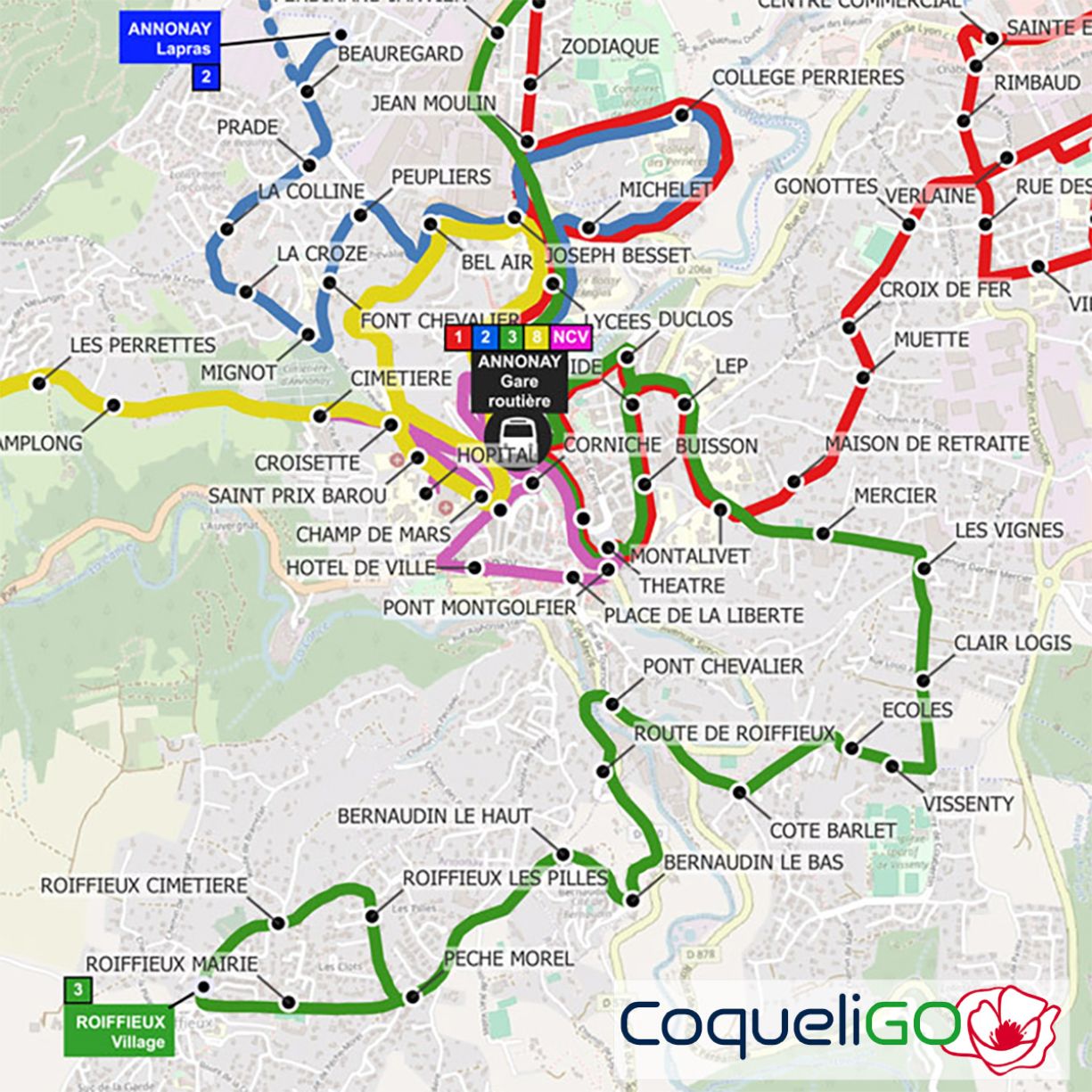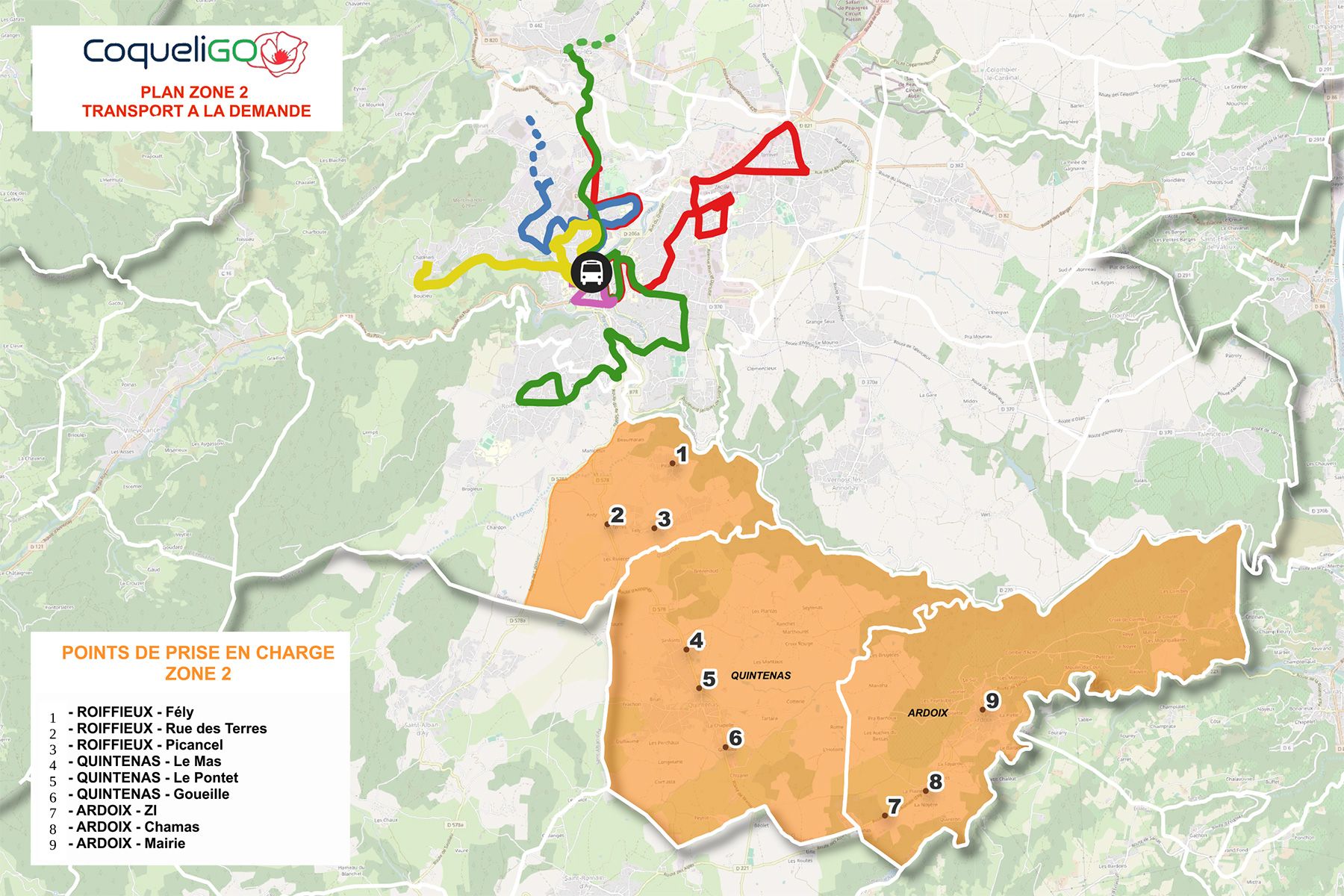 - Roiffieux parmi les 5 communes desservies par le réseau urbain,